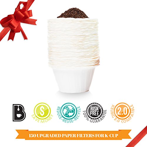 on Brewooze- 150 Count K-Cup Filters – For Single Serve Coffee Machines – Compatible with Keurig – Eco-Friendly – Reusable and Disposable Paper filter – Easy to Rinse – Essential Brewing Accessories.