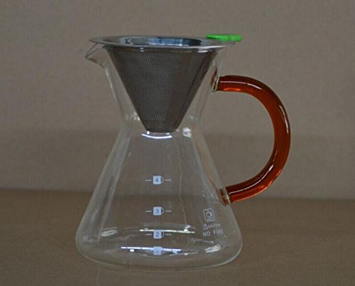 The pour over coffee maker, together with the permanent stainless steel mesh Cone Coffee Filter, makes perfect coffee. Clear, pure, flavorful, and without bitterness or sediment. The coffee only comes in contact with the perfectly designed mesh filter and glass carafe!