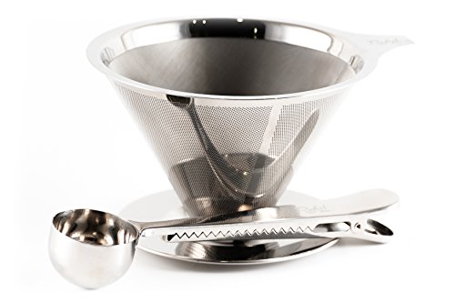 on Rohst Coffee Co. Pour Over Coffee Brewer (Permanent, Reusable, Stainless Steel Dripper) – Small Batch/Single Cup Coffee Maker System – Heavy Duty Scoop and Bag Clamp.