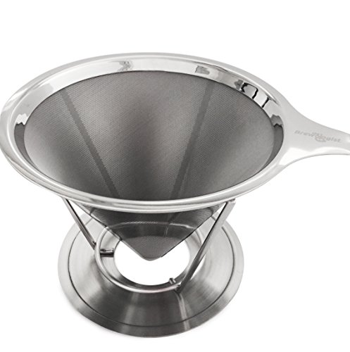 on The Brewologist Pour Over Coffee Cone, the Clever Coffee Dripper: Permanent Reusable Stainless Steel Coffee Filter and Brewer with Pour Over Coffee Stand (4 cup).